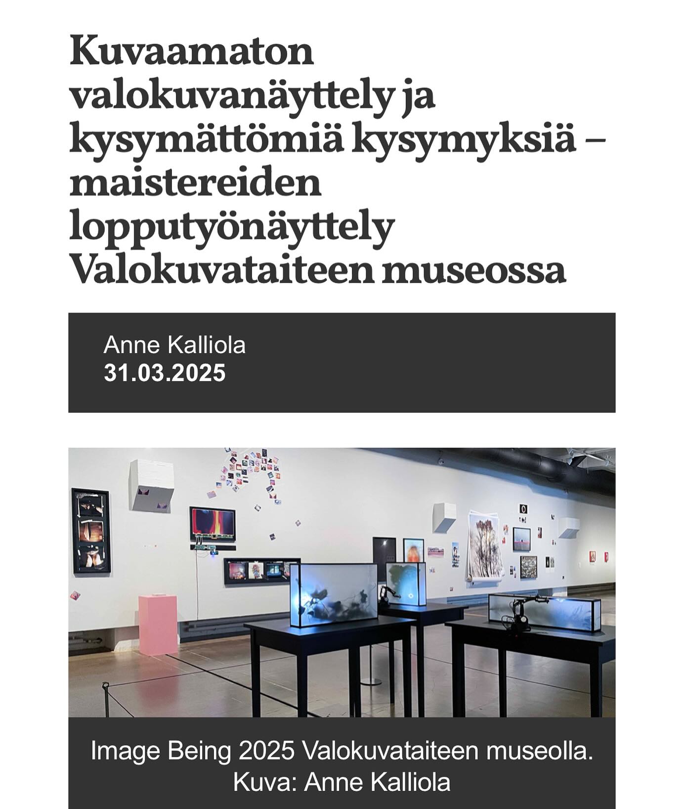 We have now ended the application procedures for the gallery space of the Finnish museum of photography. We have chosen 7 applications from the 175 that we received, continuing the exhibition period until the end of 2024 because of the large number of great applications.