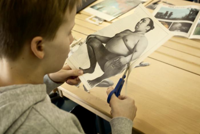 Mitä?: Koululaistyöpajoissa valokuvia tehtiin kollaasitekniikkaa, neulanreikäkamerakuvausta, syanotypia-menetelmää sekä image transferia hyödyntäen. Esimerkiksi syanotypia on kuvan kehittämistekniikkana haastava mutta myös kiinnostava ja monipuolinen. Siinä nuorten kalansilmälinssillä ottamat kännykkäkuvat kehitettiin tällä vanhalla tekniikalla. Image transfer -työpajassa hidas ja hauras prosessi mahdollistaa kärsivällisyyden ja uuteen mediaan tutustumisen. Taiteellisen prosessin eri vaiheiden kautta voitiin käsitellä visuaalista kulttuuria kokonaisuutena.