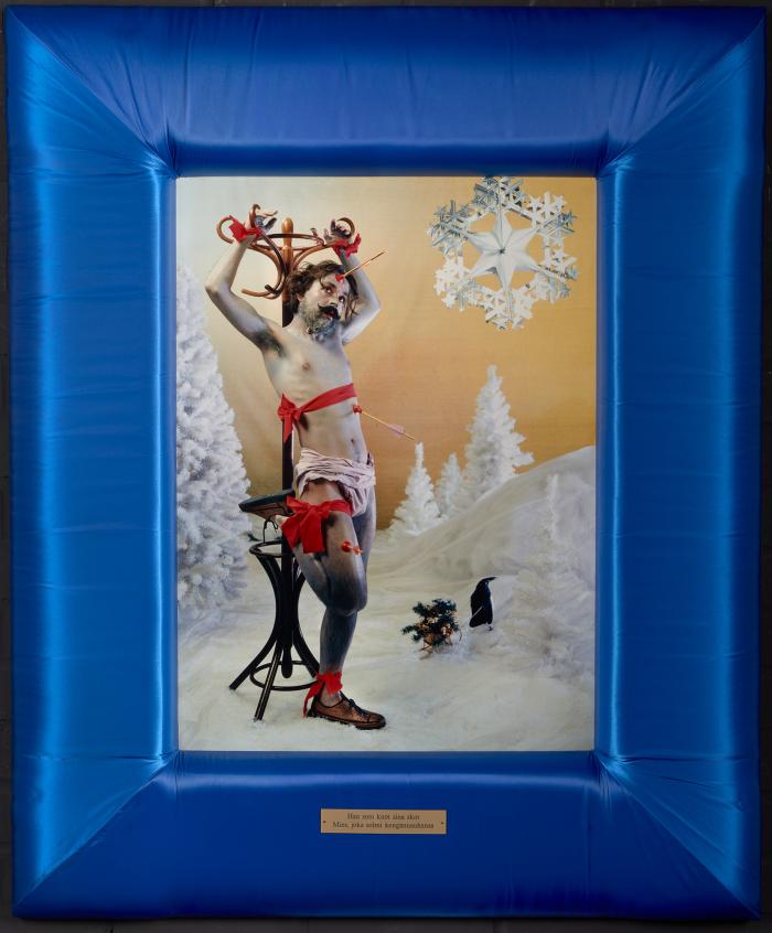 Magnus Scharmanoff: Mies, joka solmi kengännauhansa, sarjasta Sankariveljekset. Suomen valokuvataiteen museon kokoelma.