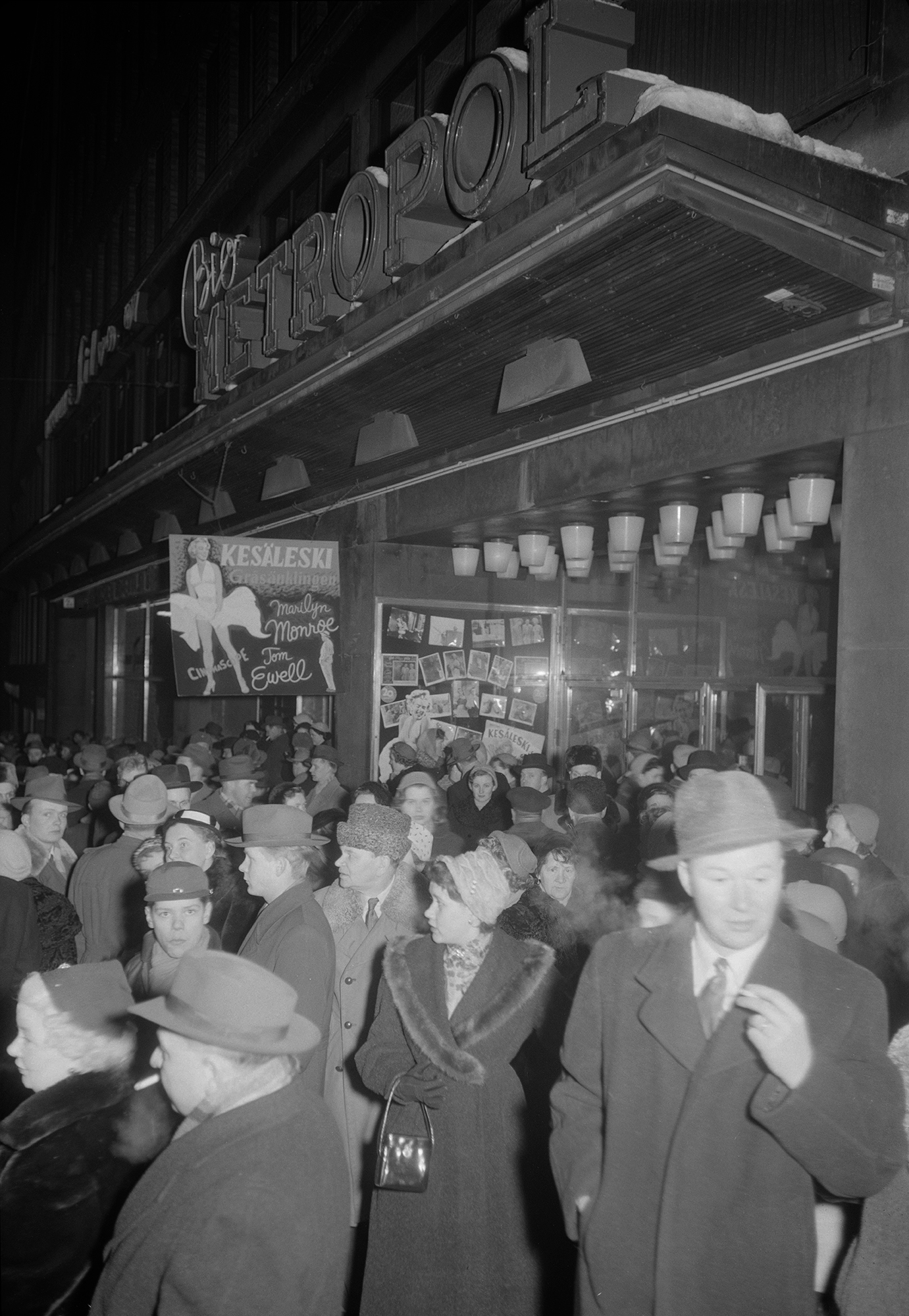 Valokuvataiteen museon kokoelmista valittu kuva: Elokuvateatteri Metropol, Helsinki, jono ovella 14.3.1956.