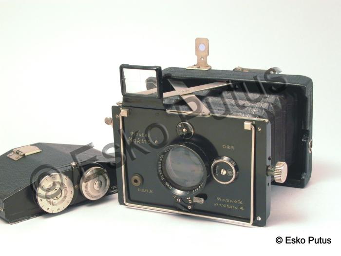Plaubel Makina, jossa sulkimen (Compur) aikarengas on objektiivin ympärillä, tuli myyntiin 1931 ja siihen tehtiin rullafilmikasetti 1932, niitä sai mainoksen mukaan 6x9, 6x6 ja 6x4,5 kokoja. Kuitenkin ainoastaan 6x9 kokoisia on nähty.